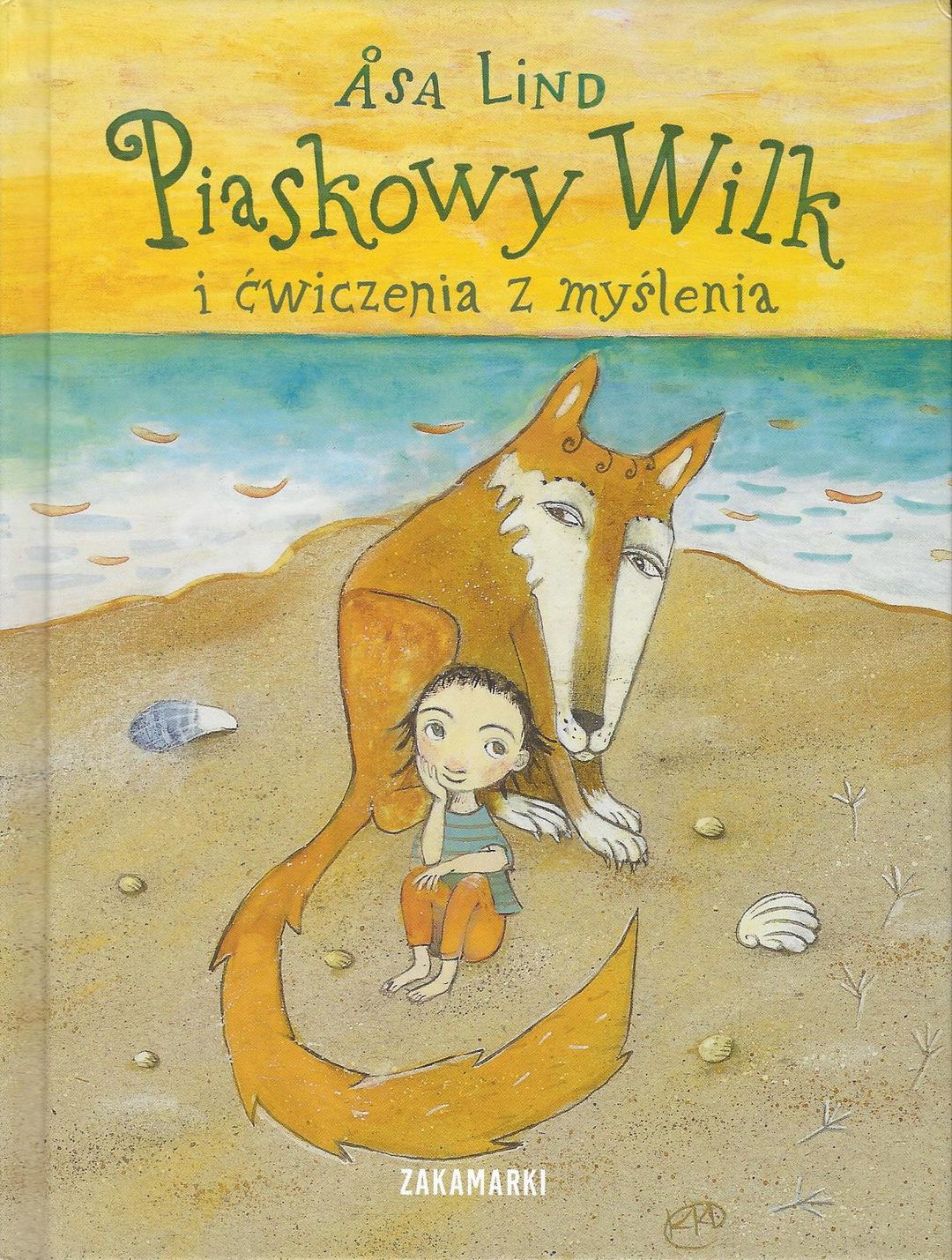 Pewnego dnia Karusia kopie na plaży dół w piasku i znajduje w nim niezwykle wyjątkowe zwierzę. Piaskowy Wilk jest słonecznożółty, dziki i radosny, i co najmniej tak stary jak gwiazdy. Karusia i Piaskowy Wilk wspólnie próbują wyjaśnić zagadki otaczającego świata - takie jak siniaki i wszechświat, wierzgające nogi czy tajemne języki. [Wydawnictwo, 2021]